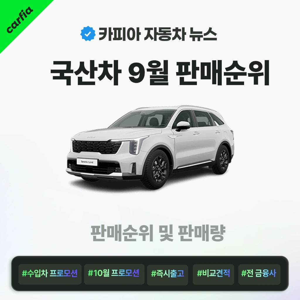 2025년 9월 국산차 판매순위가 공개됐습니다.