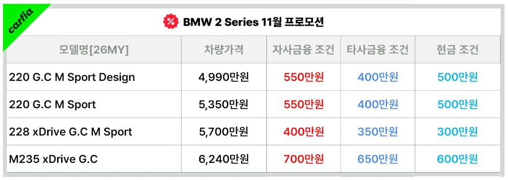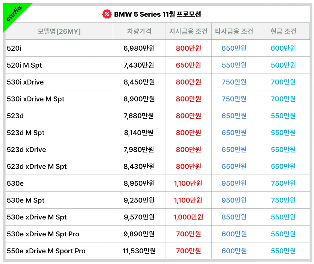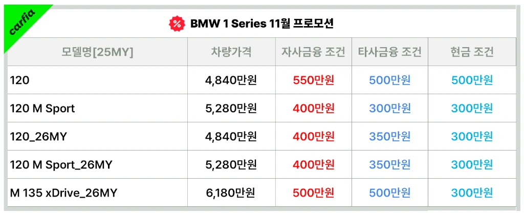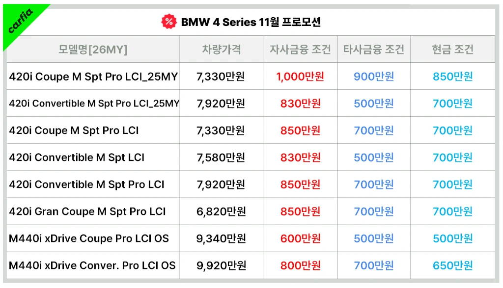 안내드린 BMW 11월 프로모션은 작성일 기준이며,